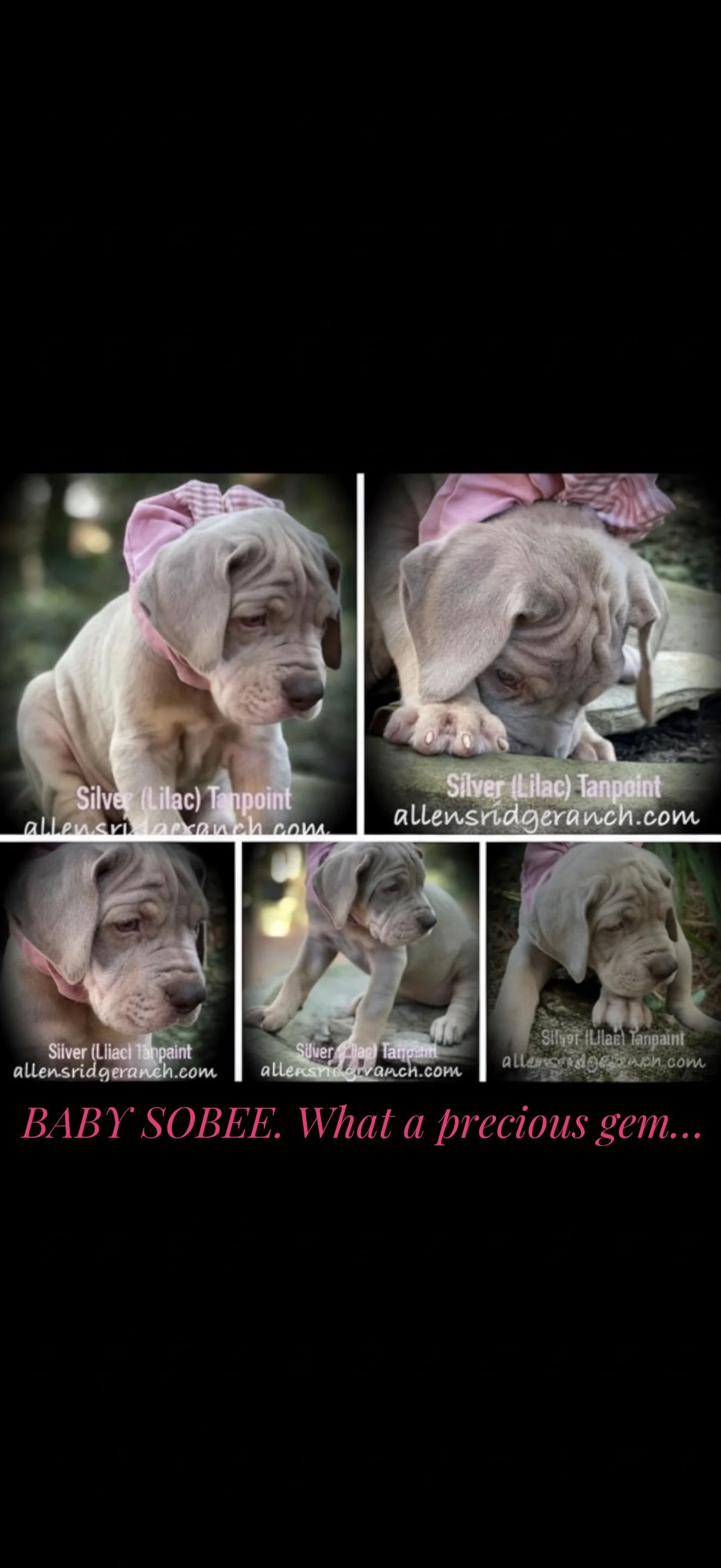 Sobee is such a beautiful girl. Big and thick boned. We bred her with Tanner our stately, tall, striking male who owns the world as he knows it! What a truly profound combination of genetics in both looks and nature.