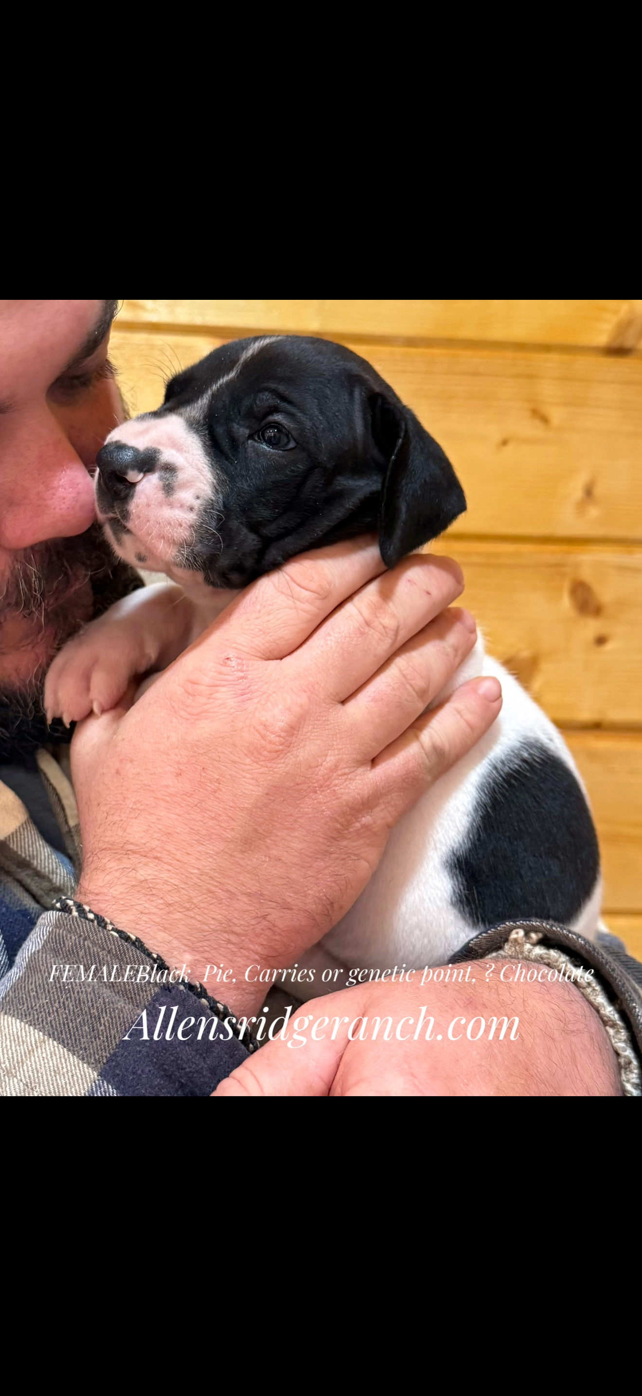 At 7.5 weeks this prescious black/White Pie (spots) is looking for your couch! Vet checked and first shots are given. She is full of courage, inquisitive spirit, laid back and so loving! A later life is built upon the beginning. At Allen’s Ridge Ranch.. a well rounded, happy and healthy start. In the Puppy Palace we provide the best early exposures, contact, stimulation and endless love and cuddle time! A doggy door out to the play covered porch and a ramp down to the enclosed outside play area. I live with them in the Palace for their first week of life. It is not just something to do. It is what we do! Greenville SC,