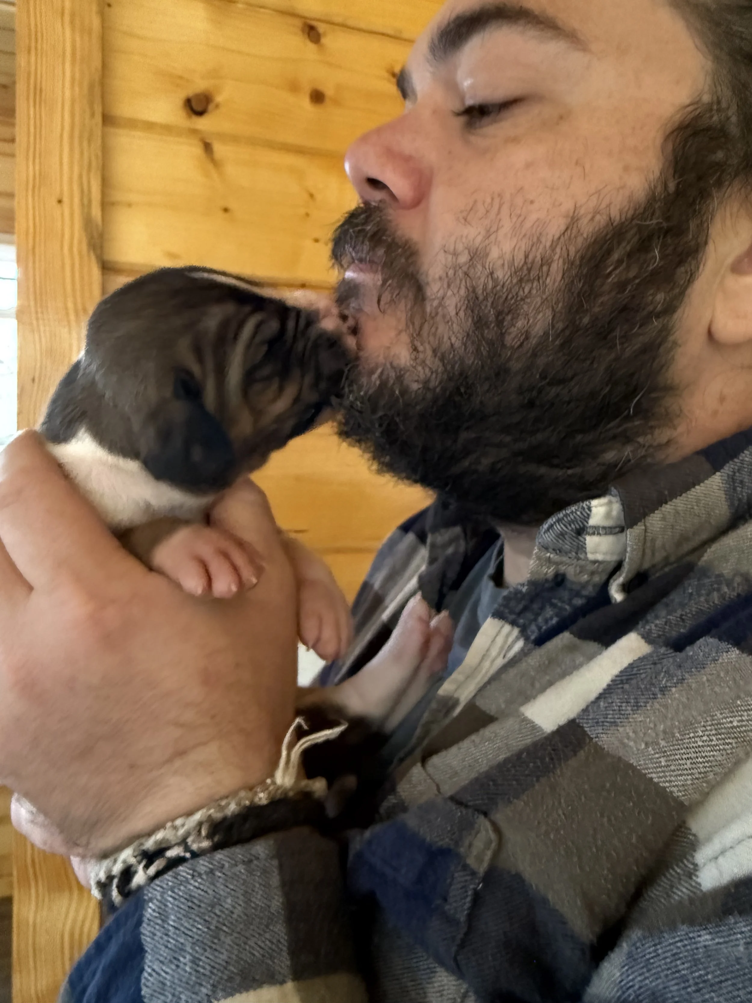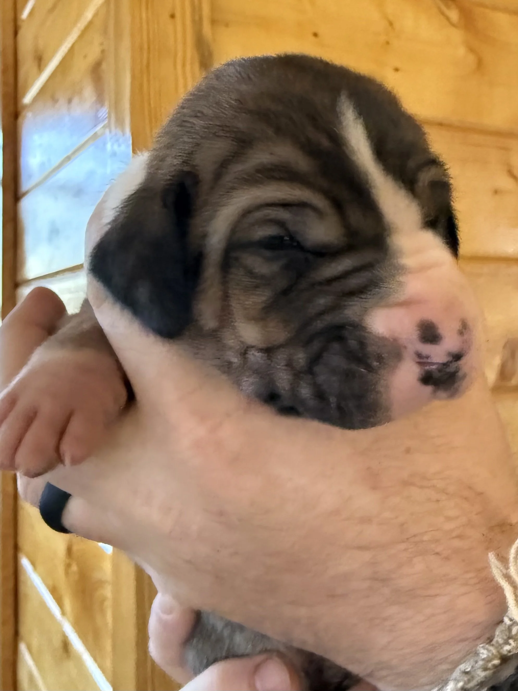 Fawn Mantle (she will become a light fawn with black around her white mask)!