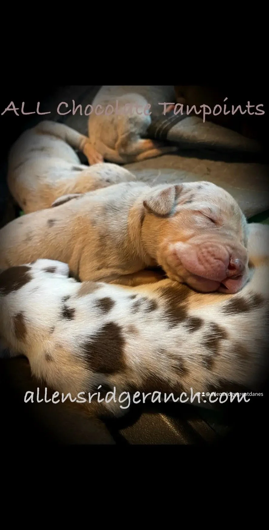 Presenting our Great Dane Chocolate Tanpoint babies…3 weeks old today! Born 4/9/23 (Easter Pups)
